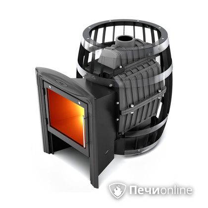 Печь рассчитана на объем парной от 8 до 18 куб. м. Корпус выполнен из чугуна, который превосходит сталь по теплоёмкости - тяжелая, толстостенная чугунная печь медленнее остывает (около 3 часов) и дольше держит тепло по сравнению с печами из листовой стали и по теплопроводности - чугунный топливник нагревается более равномерно по всем поверхностям нагрева.